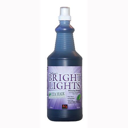 Bright Lights is a fantastic whitening sham-poo for brightening and enhancing hair. Intensifies all colors of hair coats. Bright Lights shampoos away yellow tint and stains and leaves a beautiful luster. Recommended for cattle, sheep, swine and goats. Bright Lights is formulated with the purest grade of naturally organic, plant based agricultural resources for the utmost in brightening and whitening. This biodegradable, earth safe shampoo is purified to be free of abrasives, petroleums, toxins, or solvents which can be irritating and strip the natural oils and nutrients from your animal’s hair and skin. Enriched with the new VITA HAIR™ vitamin package. 1 Quart (946ml)