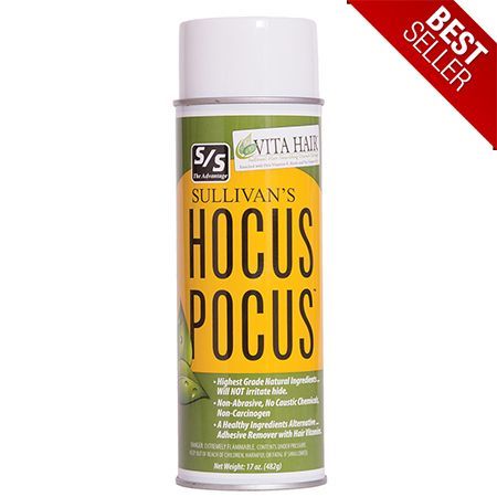 Fresh and Natural, Hocus Pocus will not irritate hair or hide. This natural product is a healthy alternative that will make a difference in your show day wash out. The pure ingredients of Hocus Pocus are formulated to naturally attack and gently remove adhesives and touch-ups away from the hair to allow for superior clean-ing. Hocus Pocus is fortified with non-drying emollients and the nourishing VITA HAIR vitamins to naturally moisturize and soften the hair shaft. Hocus Pocus will not leave an oily residue to build up heat or eat away leg hair. This makes Hocus Pocus ideal when re-fitting is needed in a short period of time. Simply spray onto hair where adhesives and touch-ups have been used, comb into hair and wash-out with Sullivan’s Vita-Hair Volumizer Foaming Shampoo. 17oz.(482g)