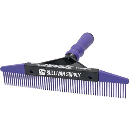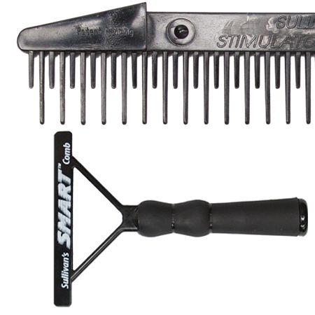 The Smart Comb™ is just that … a multi-tasking, yet the lightest weight comb on the market, with interchangeable blades that securely snap in and out of a plastic handle allowing you to pick the blade of choice. Comes as a complete unit with Sullivan’s Stimulator, Fluffer and Skip Tooth blades in one package. Or you can purchase sepa-rately as a handle and your choice of a blade. 9” comb. Smart … light weight … and economical. The new comfort handle is perfect for long days in the barn. Made in the USA!