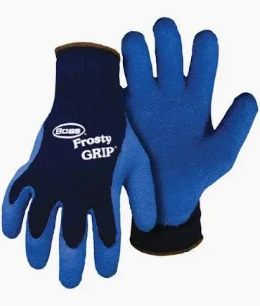 The Boss Frosty Grip Glove is great for outdoor use. It boasts a premium heavyweight coated string knit and brushed acrylic shell for added warmth and comfort. The textured latex on the fingers and palm helps add more grip for use and protects against wear. The flexible knit wrist seals out dirt providing even more comfort and convenience.